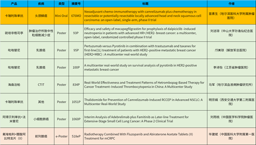 在头颈肿瘤、乳腺癌、肺癌、前列腺癌等多个疾病领域,卡瑞利珠单抗、阿得贝利单抗、吡咯替尼、氟唑帕利、法米替尼、醋酸阿比特龙片(II)等抗肿瘤新药相关研究一共入选了1项简短口头报告、4项壁报展示和1项电子壁报,彰显了AG庄闲医药强劲的研发实力。